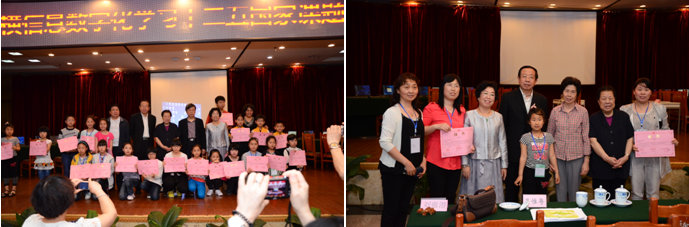 孩子们领奖的喜悦欢愉,那就更是喜溢于表。不管是幼儿园宝宝,还是中小学生,个个脸上挂满笑容。解延德爷爷抱起十岁的脑瘫孩子李佳怡,将她领到大家的中间,让她更充实骄傲地品味着和大家一样的纵横信息数字化学习研究教学实验的成功喜悦…。